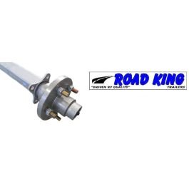 Introducing the **ROAD KING** factory OEM replacement trailer axle, designed for durability and performance. This galvanized axle stock weldment includes a hub assembly featuring a 5-on-4-1/2" lug pattern.